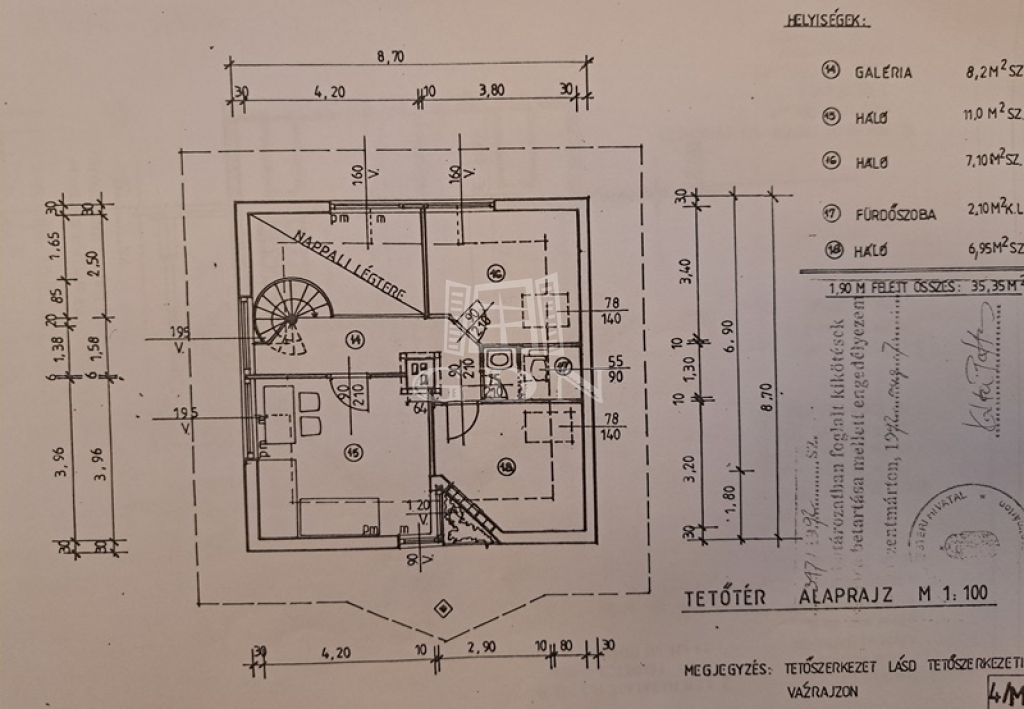 Falazata 30-as Phoroterm tégla 10 cm Dryvit homlokzat szigeteléssel, beton födémmel, a tető héjazata betoncserép, a tetőtéri ablakok szúnyoghálóval és sötétítő rolóval szereltek, nyílászárói fa szerkezetűek 2 rtg üvegezéssel,