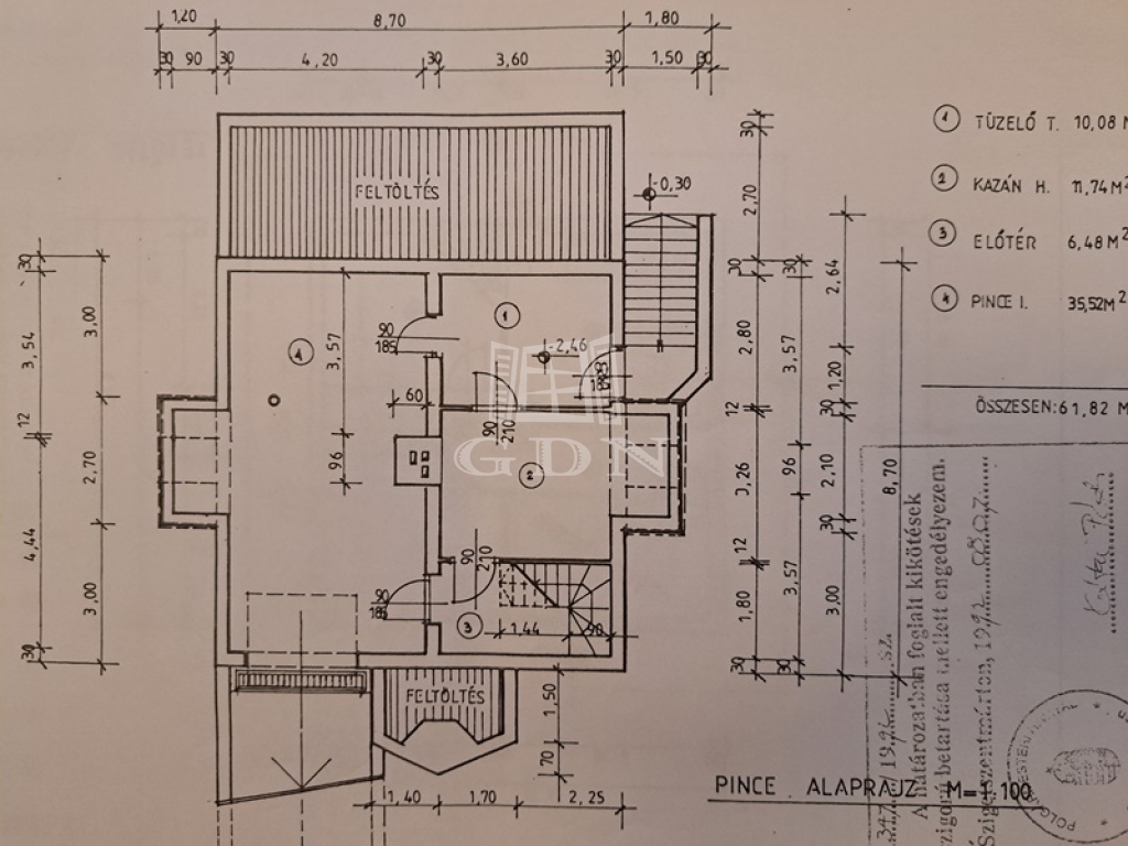 A szuterén szinten mosókonyha, garázs, tárolók, valamint a kazán és medence gépháza található,