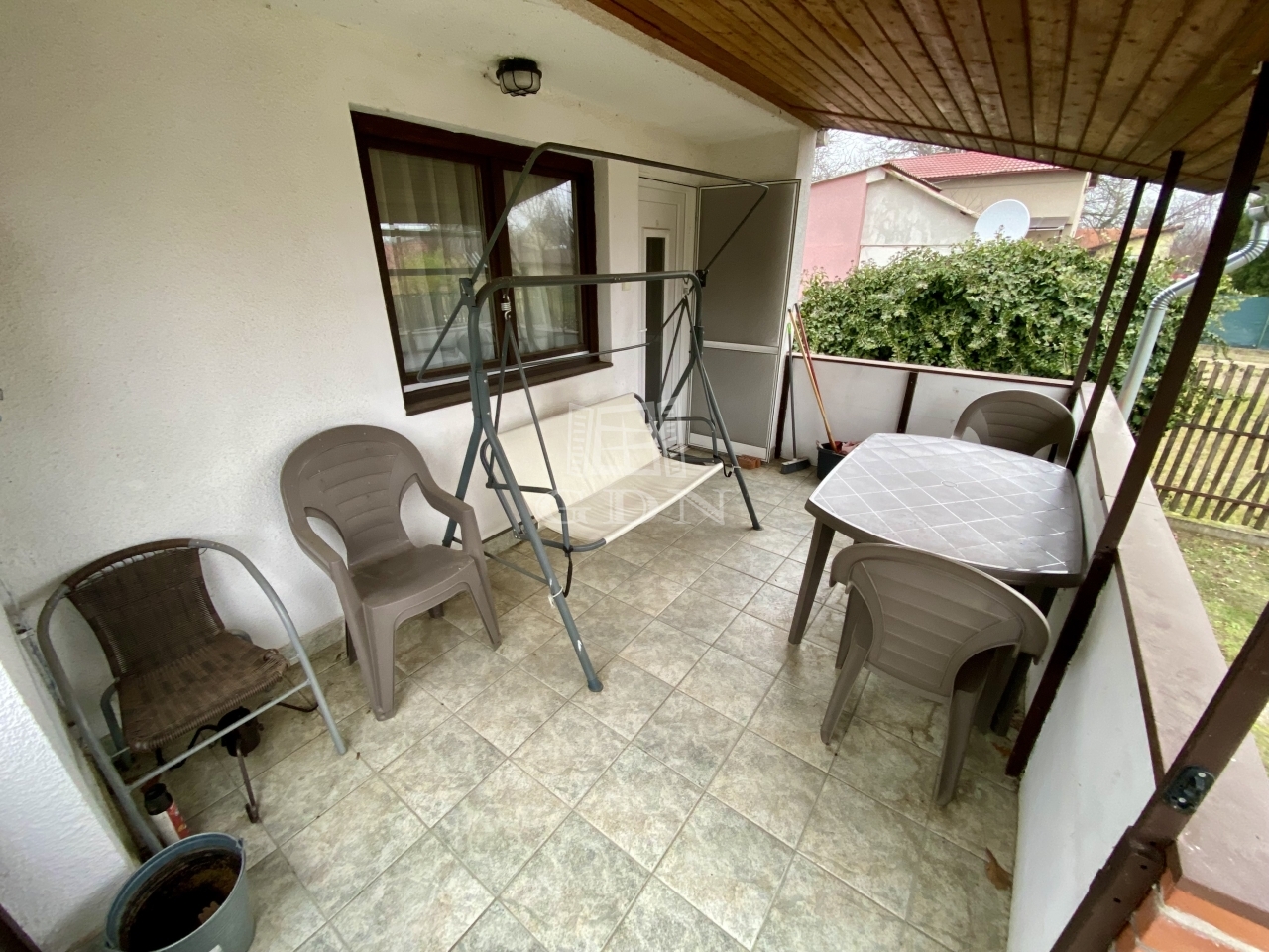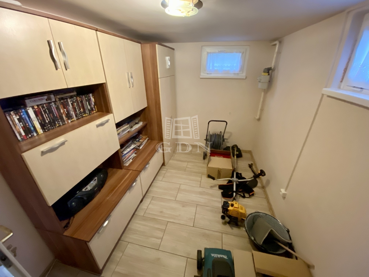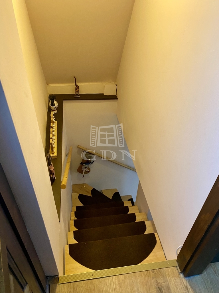 A 309 m²-es telken elhelyezkedő épület összesen mintegy 68 m² hasznos alapterülettel rendelkezik. Az alagsori szint 30 m²-es, ahol a konyha, egy szoba és egy kis helység került kialakításra. Itt található egy meghitt hangulatú cserépkályha és emelett elektromos fűtőtestek biztosítják a komfortot. A földszinten egy 24 m²-es lakótér található egy nappalival és egy fürdőszobával, amelyhez egy 10 m²-es terasz kapcsolódik; ezen a szinten gázkonvektor és elektromos fűtés gondoskodik a kellemes hőmérsékletről. A tetőtérben egy 10 m²-es szoba kapott helyet, valamint egy 4 m²-es terasz, ahonnan lenyűgöző panorámás kilátás nyílik a Duna holtágára és a környező természeti környezetre.