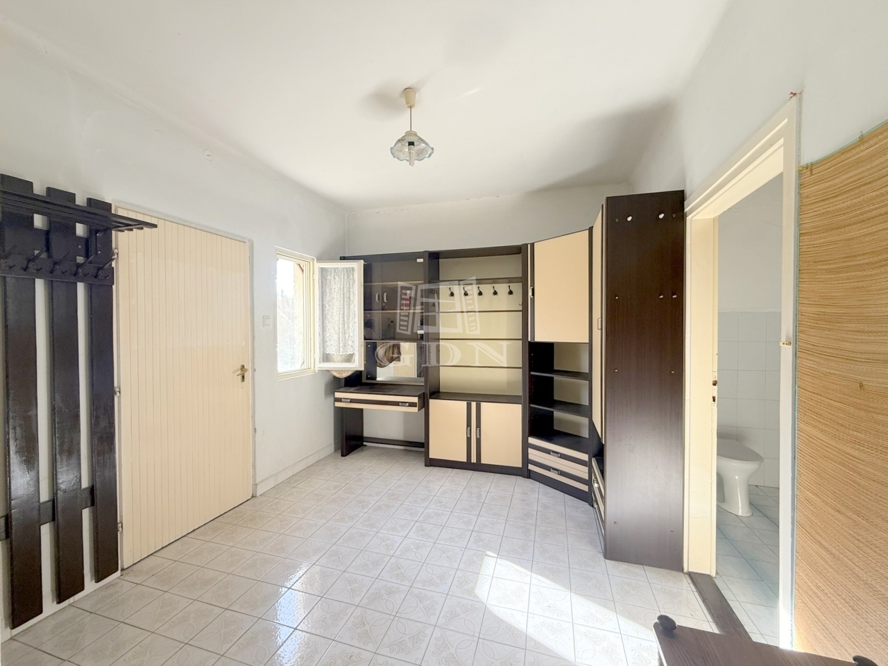 Kizárólag 38 - as téglából épült, aljzatszigeteléssel, stukatúr födémmel és cserép fedéssel bír.