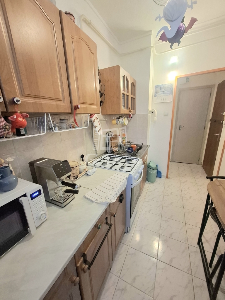 A lakás a társas-ház első emeletén helyezkedik el, elosztása