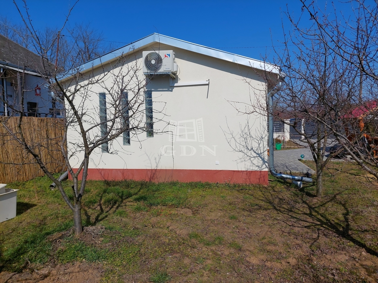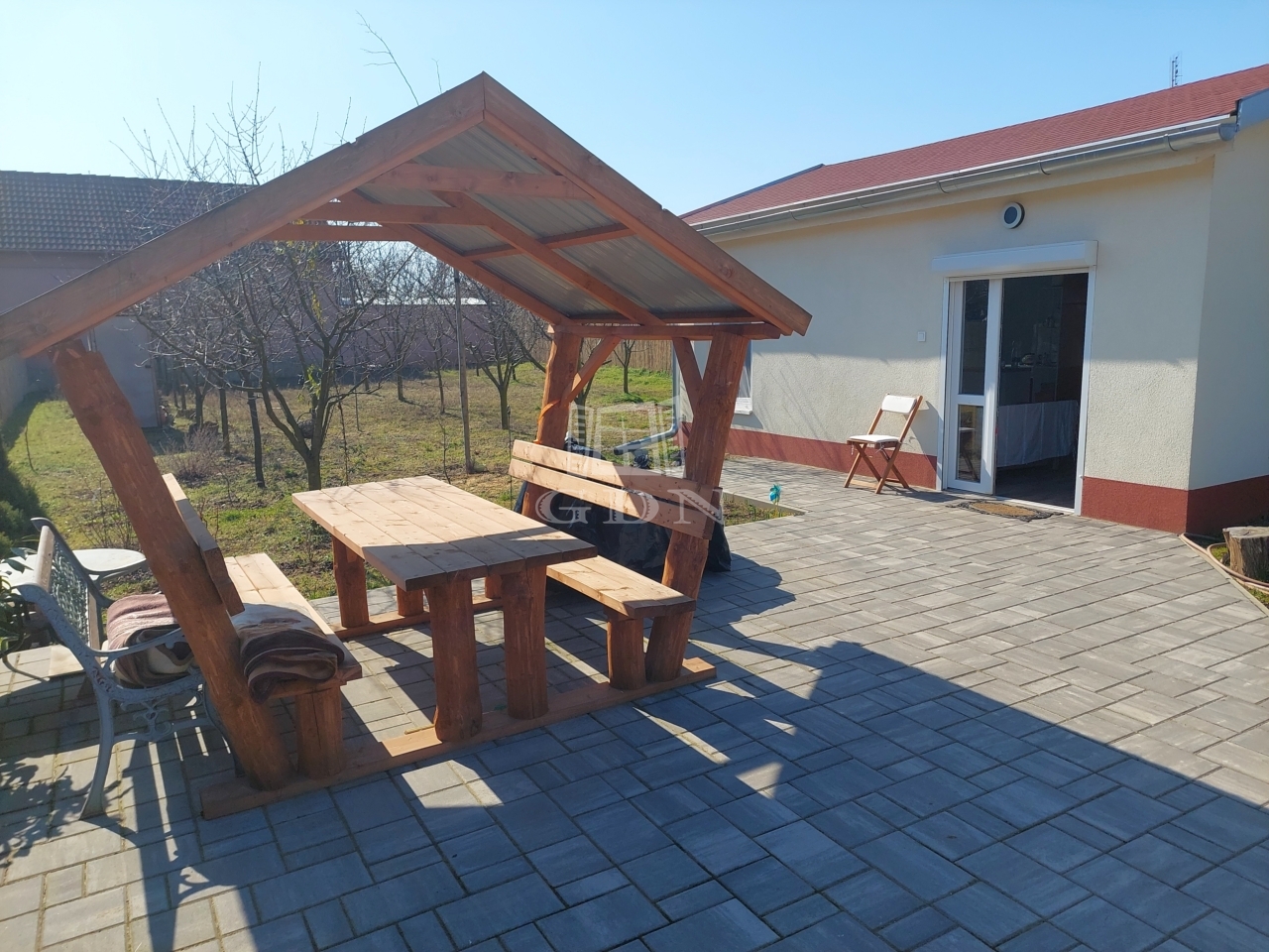 A kertes ház 2024-ben épült beton alapon könnyűszerkezetes technológiát alkalmazva, melynek köszönhetően az épület bővítése rendkívül gyorsan és költséghatékonyan megoldható. A tetőszerkezete nyeregtető, zsindelyfedéssel ellátva. A fűtés a nappaliban hűtő-fűtő klímával van megoldva, a fürdőszobában pedig padlófűtést építettek be. Az épületben villany (1×32A), víz, és csatorna be van kötve, gázcsonk pedig a telken belül található.