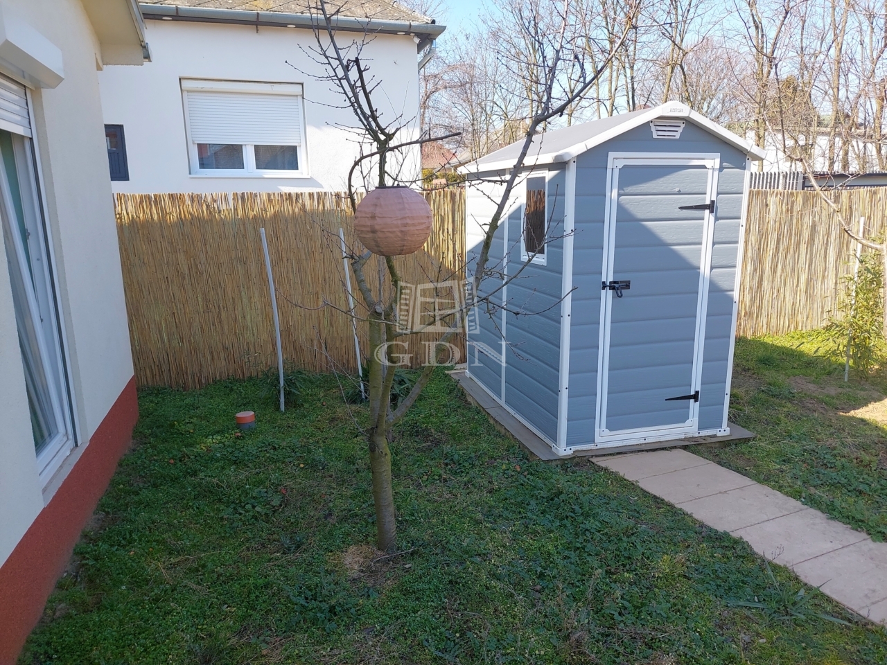 Az előkert részén helyezkedik el egy új kerti szerszámtároló, illetve itt lehet létrehozni egy kis konyhakertet is. A szépen gondozott hátsó kertben fiatal gyümölcsfák találhatók és ezen a területen, szükség esetén a ház további bővítése is lehetséges. A környék kifejezetten csendes, nyugodt kertvárosias. Bár az ingatlan előtt jelenleg még murvával borított út található, de a két szomszédos utca felől aszfaltozott úton közelíthető meg.