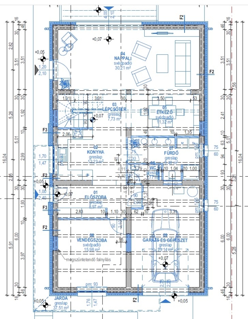 A ház azonnal birtokba vehető, az építkezés a rendelkezésre álló dokumentumoknak köszönhetően késedelem nélkül folytatható.