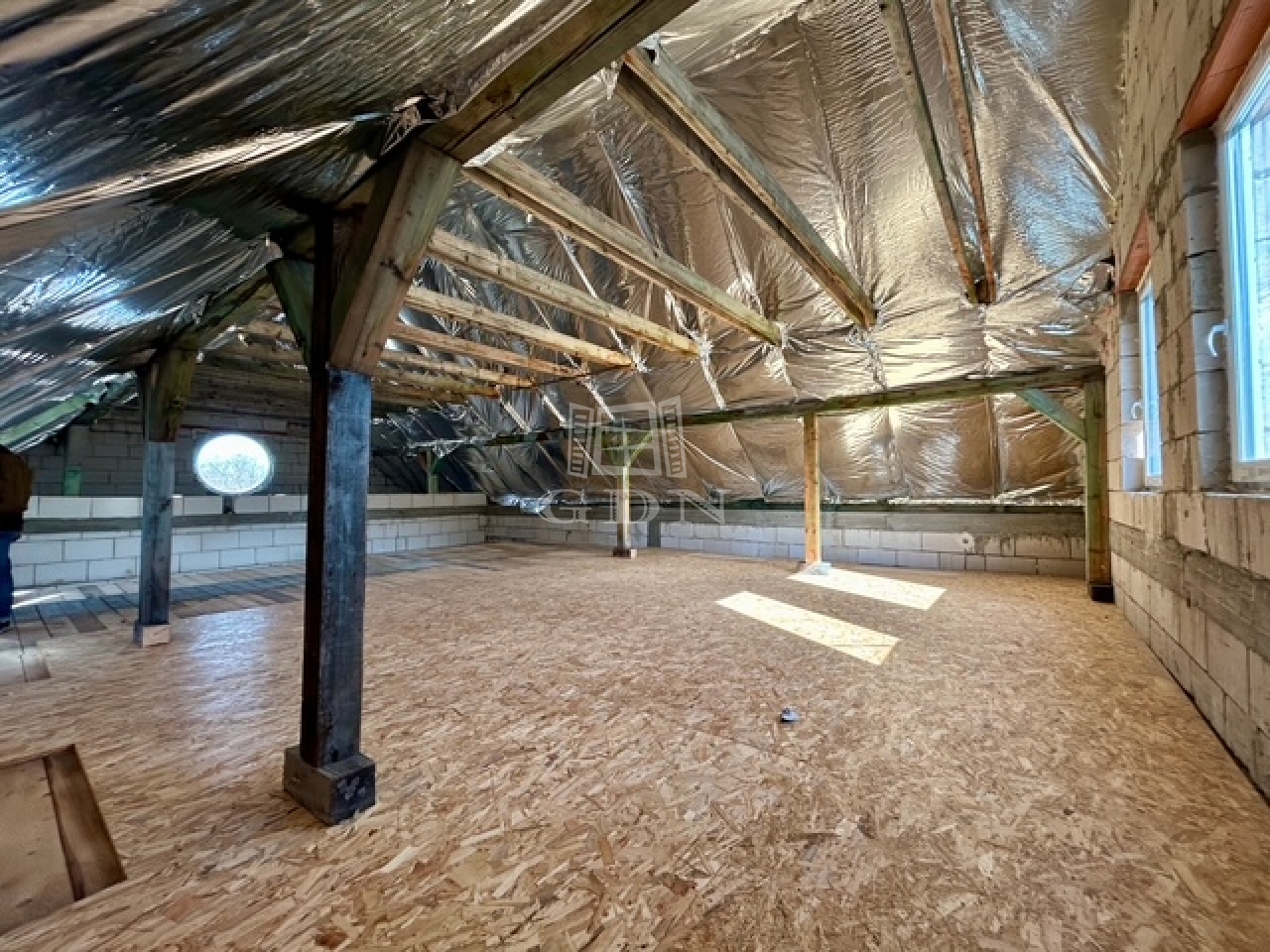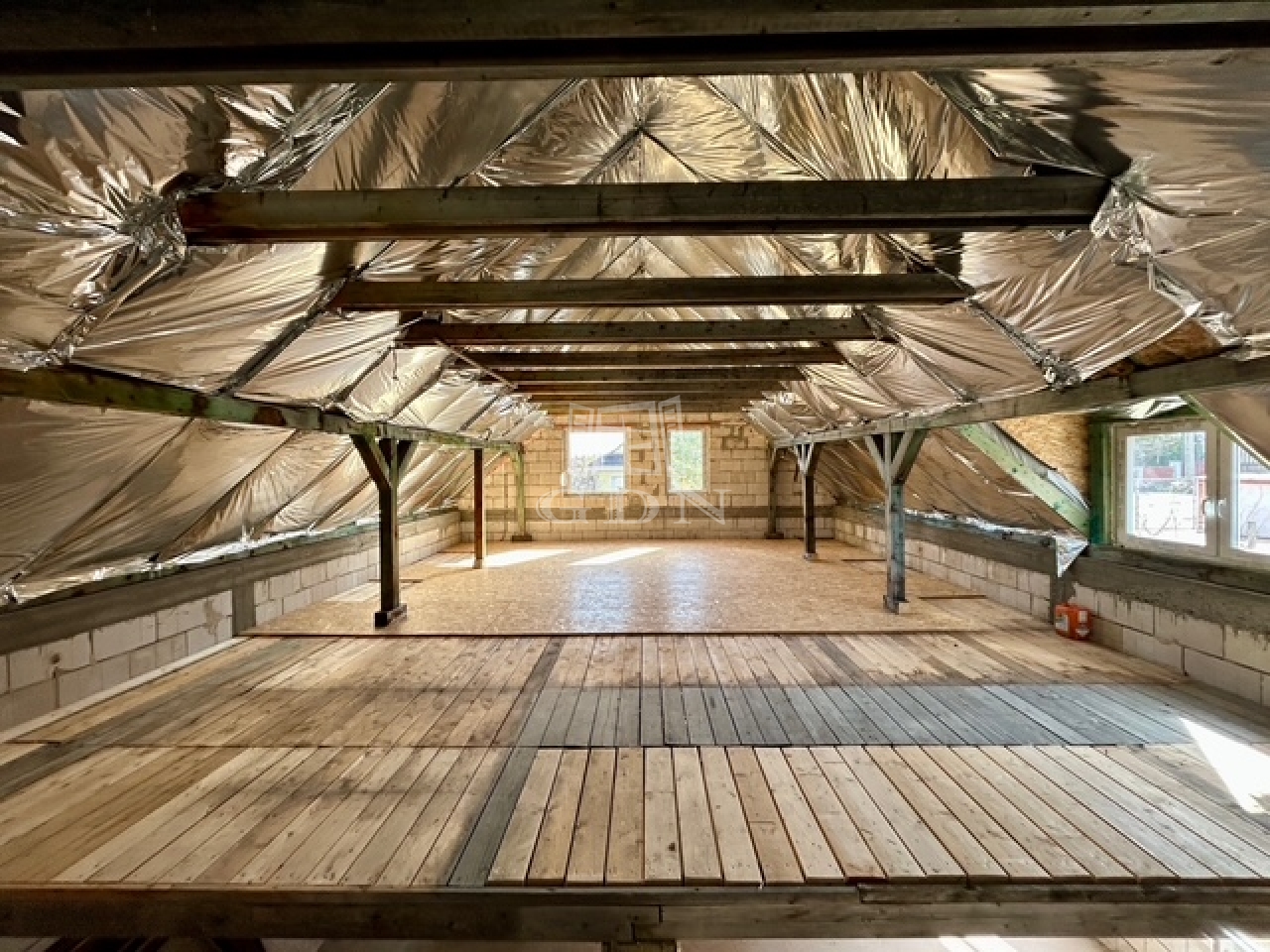 • Födém: A fa födém részben elkészült; a nyitott szakaszok lehetőséget adnak galéria kialakítására vagy a teljes beépítésre.