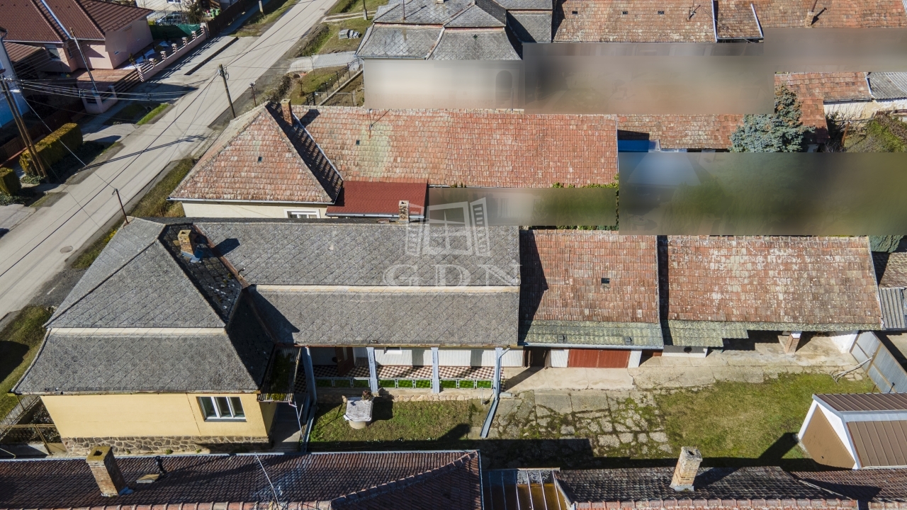 Az épület 1950-ben épült, 2 szoba, előtér, nappali, fürdő+zuhanyzó, konyha, tároló, kamra, nyári konyha, garázs jellemzi, fűtése gázkonvektor, a meleg vizet villanybojler adja.
