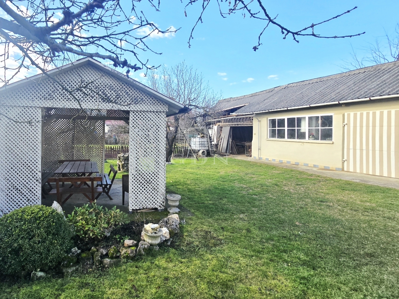 A kertben számos díszbokor és termő gyümölcsfa található, többek között körte, alma, dió, a kerti kiülő pedig lehetővé teszi a kellemes együttlétet a család számára. A gondozott, körbekerített udvar biztonságos teret biztosít gyermekeknek és háziállatoknak egyaránt.