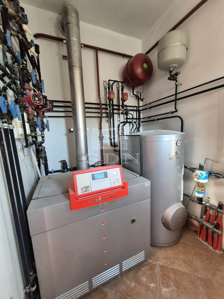 A felső szinten méretes nappali-társalgó, konyha, három hálószoba, illetve két zuhanyzós fürdőszoba kerültek kialakításra.